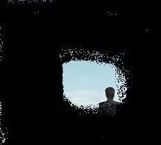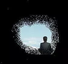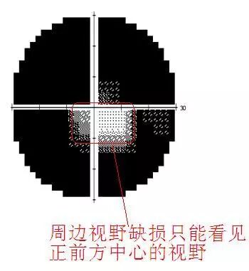 视网膜色素变性疾病引起的视野缺损,红框位置表示周边看不见,仅能看见正前方中心位置